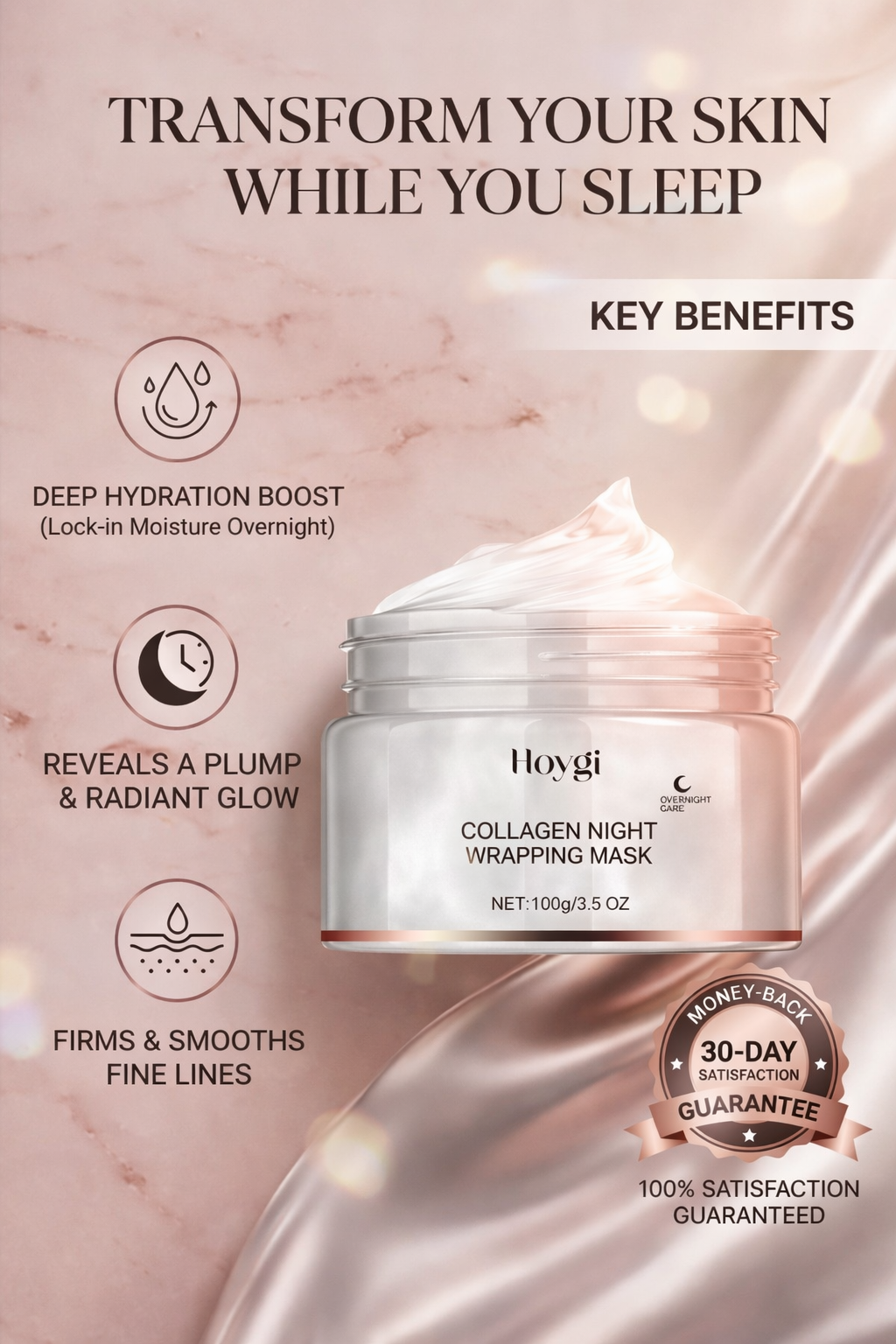 You will notice the reset after just one night. By syncing with your body’s natural recovery cycle, it delivers a concentrated dose of hydration and collagen. You will wake up to skin that feels bouncy, looks visibly radiant, and has that polished, glass-like finish usually reserved for professional facials.
